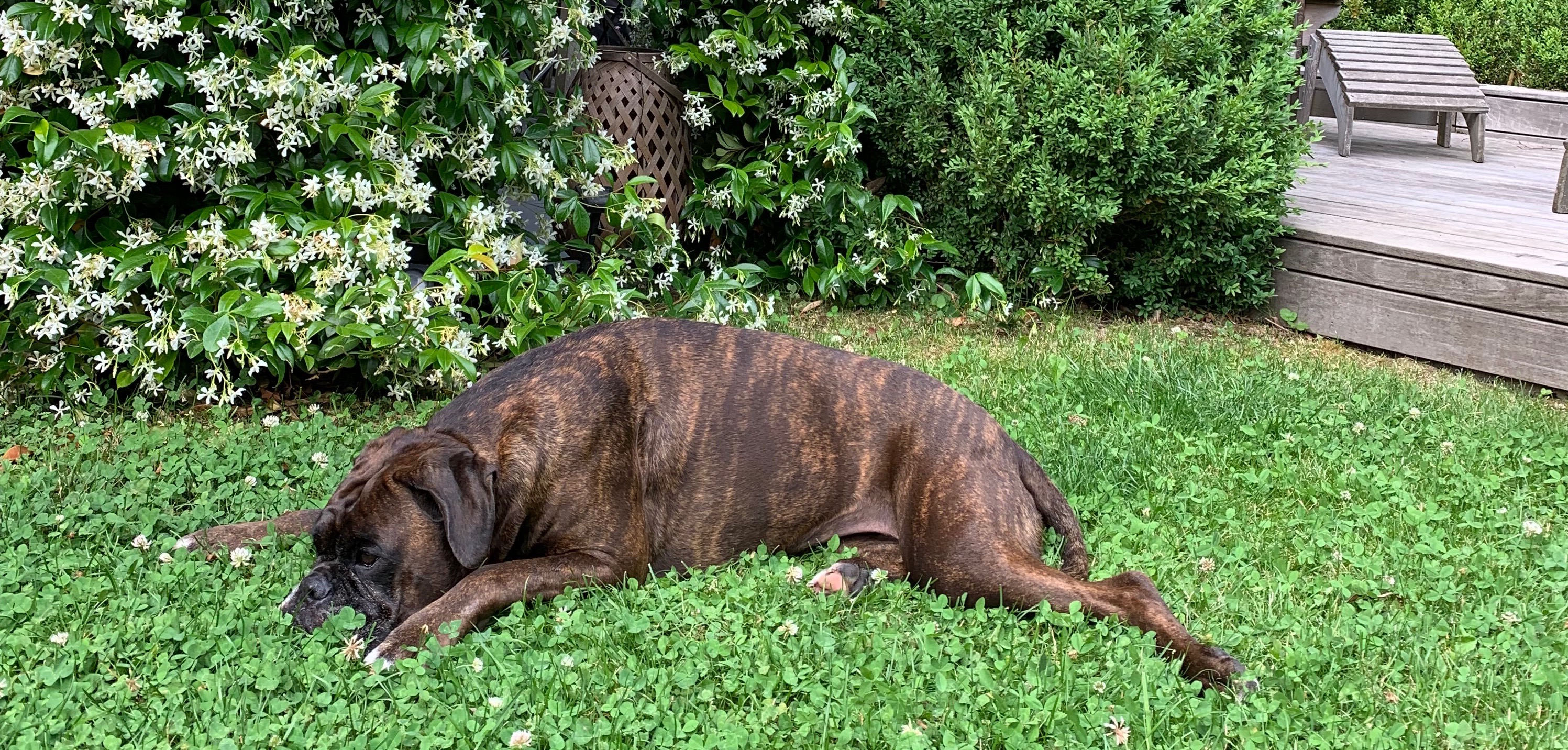 We were hanging out in the garden, I took a few joyful jumps around her when there was a sharp pain in my operated leg.