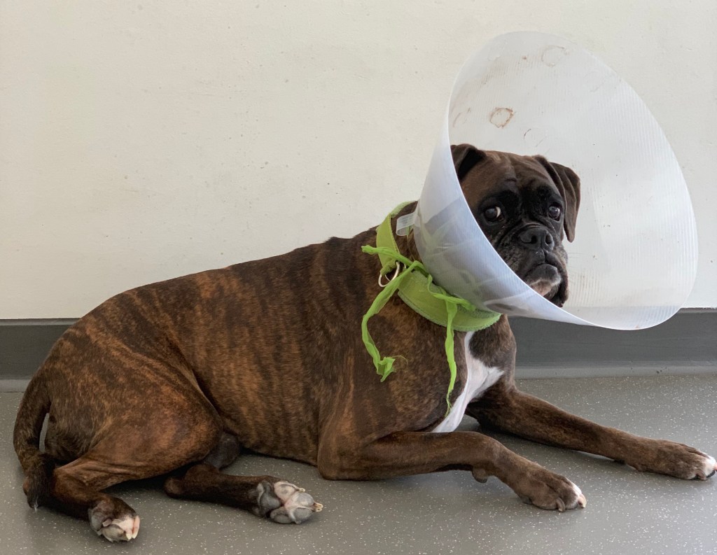 We’re off for 10 days of torture cone, and four weeks of minimal walking.