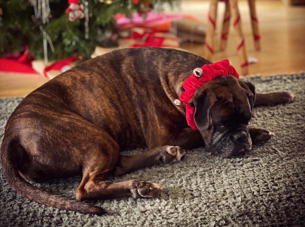 Me, with the bell collar. I don’t understand why Indya always gets to wear the bandana. But in this house, sadly, I’m not the boss…