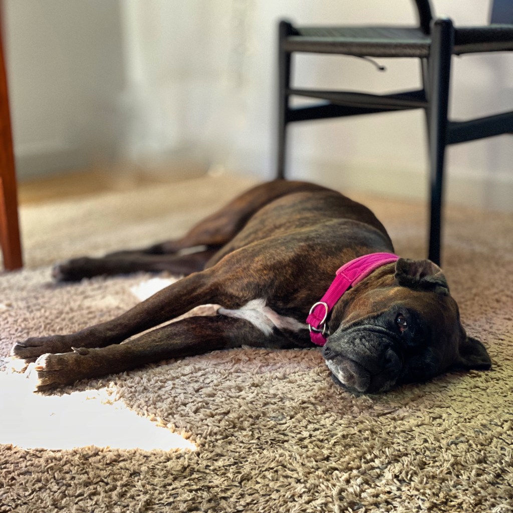I know Veronica is relieved and doesn’t mind at all, I think she looks funny. Like a dog with a muzzle.