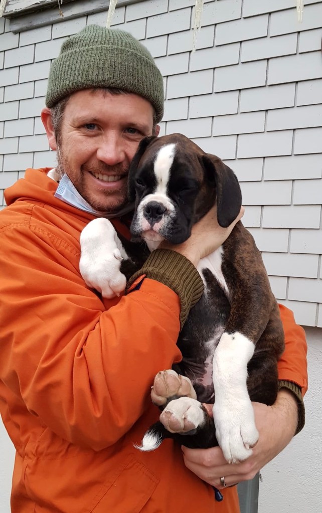 They needn’t worry. The Lydeens are a lovely family with two small children. They’d already owned a Boxer girl, Colette. “They know what they’re getting into” Veronica said.