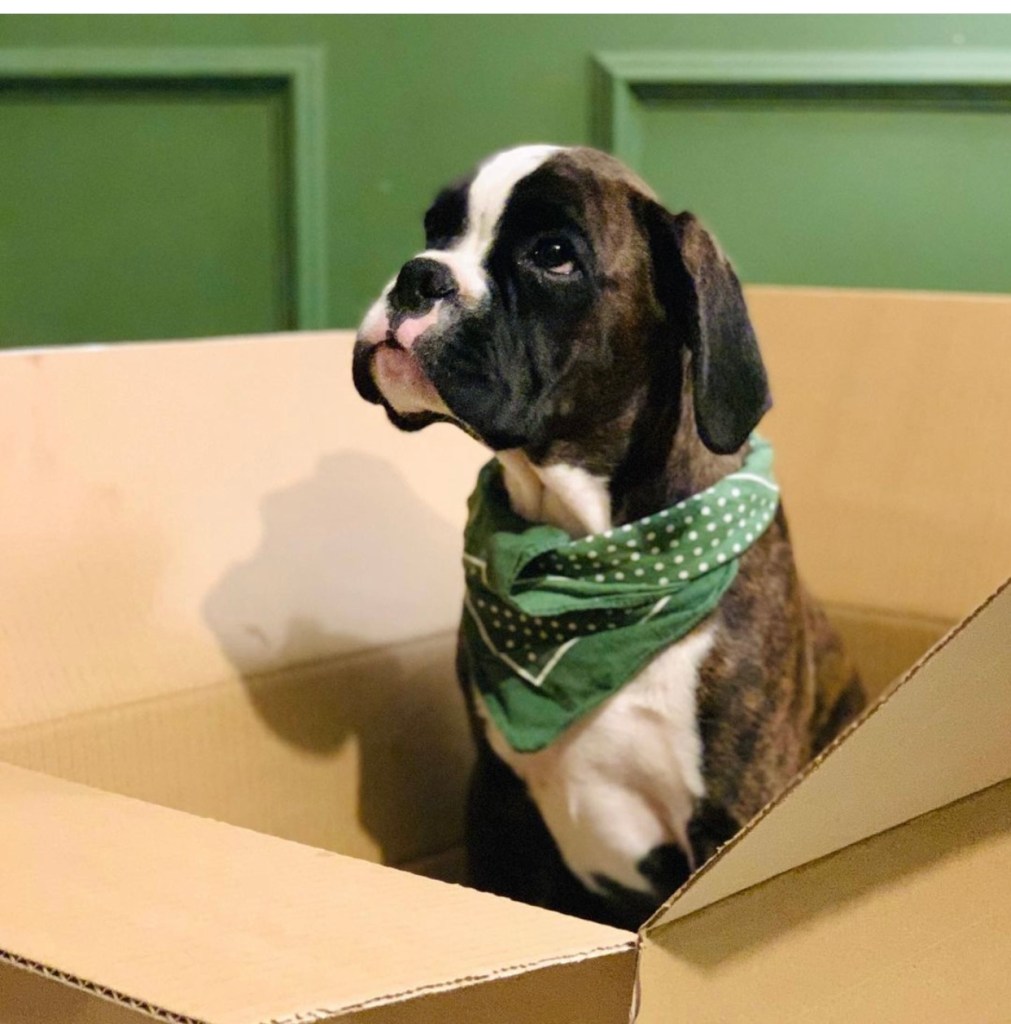 Adopt your most innocent look, the “I’m so sorry, I had no idea” look. Works every time, trust me! Nobody can resist those sweet, innocent Boxer eyes.