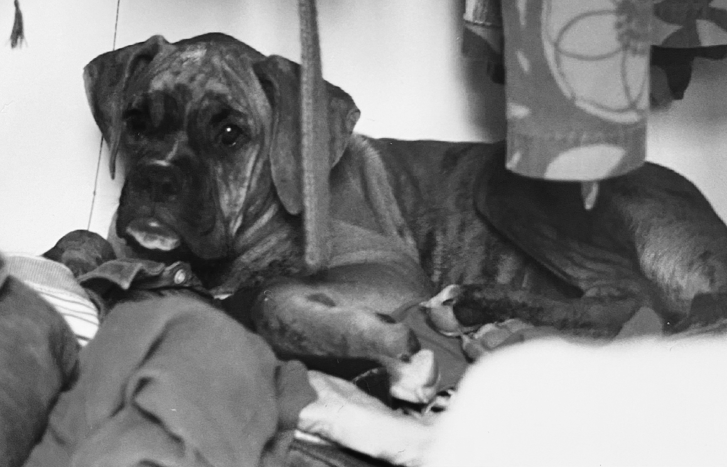 Boxers had, at the time, cropped ears and tails and their noses were longer than today’s standard. Veronica had specifically asked the breeder to leave the ears “au natural”.